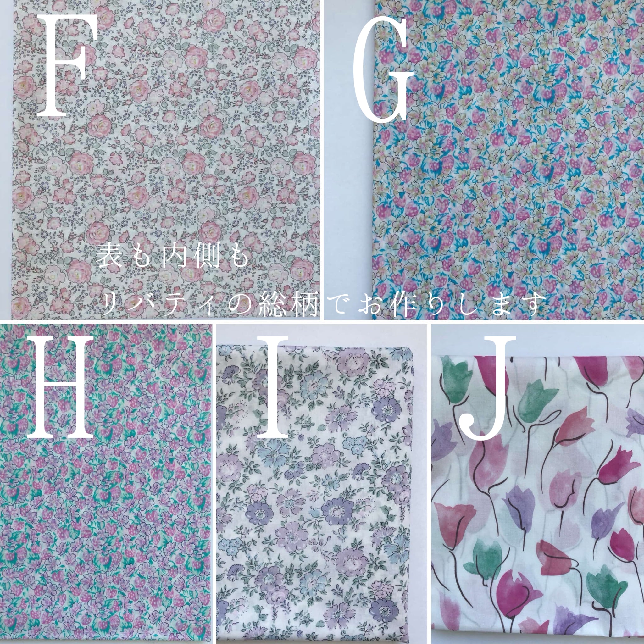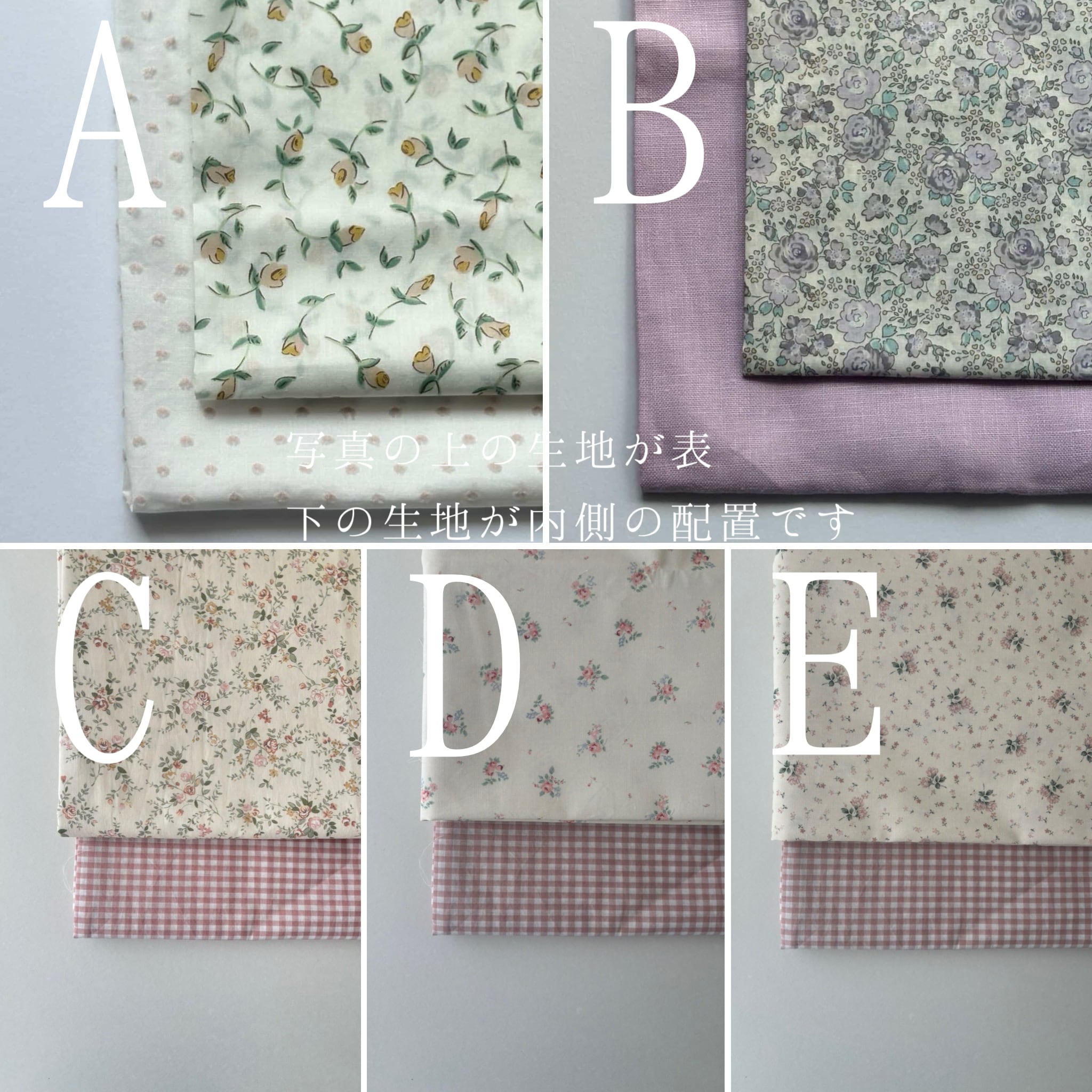 アルファベット A〜Eは表と内側の生地を2種類でお作りします